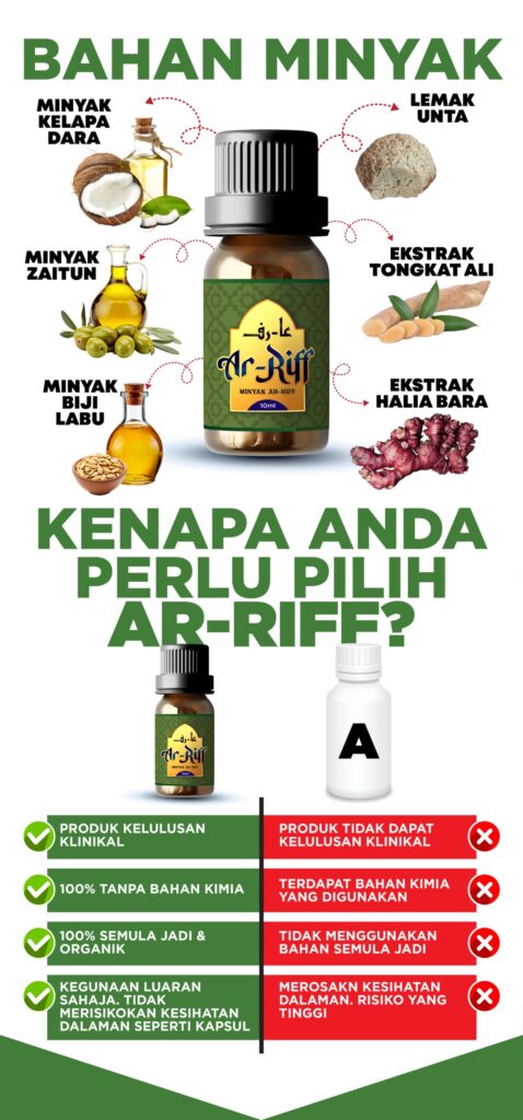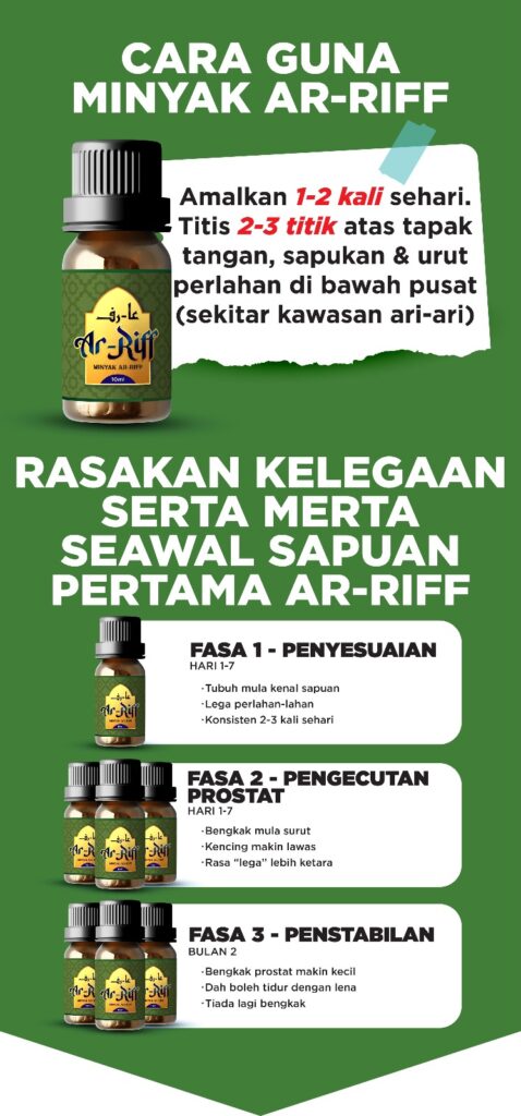 Minyak Prostat Ar-Riff hanya untuk kegunaan luaran sahaja.